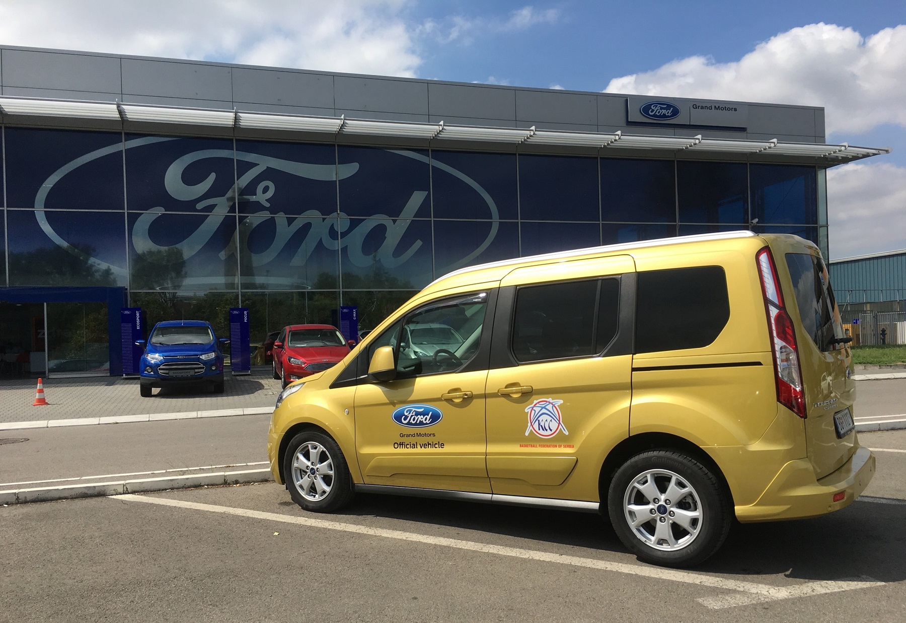 U prostorijama Grand Motorsa, ovlašćenog uvoznika, prodavca i servisera automobila i lakih komercijalnih vozila Ford Košarkaškom savezu Srbije su uručeni ključevi tri vozila sa amblemom jednog od najpoznatijih svetskih proizvođača automobila. Članovima nacionalne reprezentacije, stručnom štabu i rukovodstvu Košarkaškog saveza za obavljanje svakodnevnih poslova i zadataka na raspolaganju su Ford Tourneo Connect i „pametna“ SUV vozila Ford Kuga.