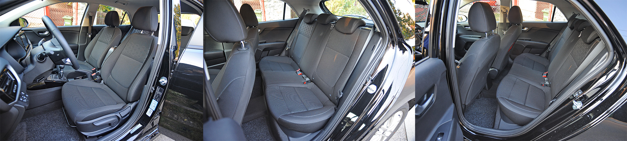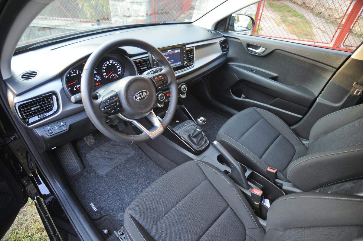 Rio je marginalno porastao, ali nije napunjen ka unutra, što znači da je zadržao svoju ponajbolju osobinu – ponudu prostora. Prednja dva sedišta su iznenađujuće bogato dimenzionisana i udobna do te mere da smo pri prelasku iz test vozila cene, bez preterivanja, oko šest puta veće od Ria, konstatovali visok nivo udobnosti. I pozadi se nađe sasvim dovoljno mesta čak i ako su napred visoke osobe, naravno uz plaćanje ceha kroz naglašeno uspravan naslon stražnje klupe.