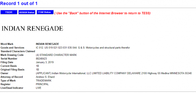 Indian Motorcycle je podneo zahtev za zaštitu dva nova imena, što nagoveštava buduće modele koji bi trebali da prošire ponudu poznatog proizvođača motocikala