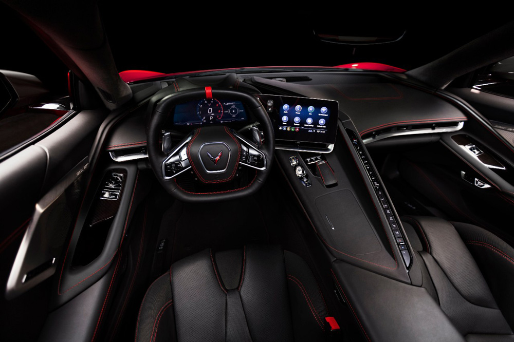 Kabina novog Corvette je evolucija dizajna sedme generacije, s tim da se kontrole za klimatizaciju sada nalaze na “hvataljki” centralnog tunela. 8.0 inčni “lebdeći” infotejment sistem nalazi se iznad dugmadi za biranje brzina, a instrument tabla je digitalni ekran od 12 inča. Kupci će moći da biraju između tri opcije sedišta – GT1, GT2, i Competition Sport.