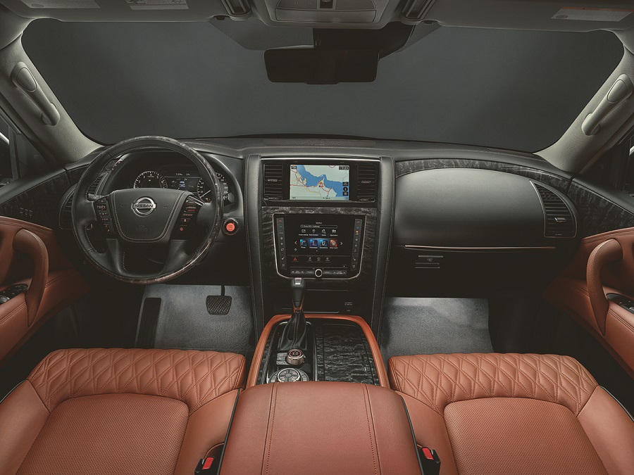 Ipak, promene su posebno vidljive u kabini. Novi Patrol konačno dolazi sa Android Auto i Apple CarPlay konekcijama, a infotejment sistem karakterišu dva odvojena ekrana: gornji za navigaciju i donji za upravljanje funkcijama vozila.