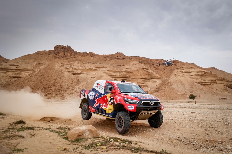 Petu, po mnogima jednu od najtežih deonica Dakar Relija u konkurenciji automobila odnela je Toyota Hilux, ali ne Nasser Al Attiyah, jedan od konkurenata za osvajanje pobede. Najbrži na deonici od Riyadha do Al Qaisumaha dugoj 661 kilometar, sa 205 kilometara vezne etape i 456 kilometara brzinskog ispita, pripala je Južnoafrikancu Ginielu De Villiersu, pobedniku Dakar Relija iz 2009. u Toyoti, dok je drugo mesto zauzeo njegov zemljak Brian Baragwanath, sa samo 58 sekundi zaostatka.
