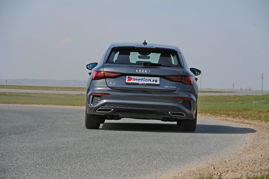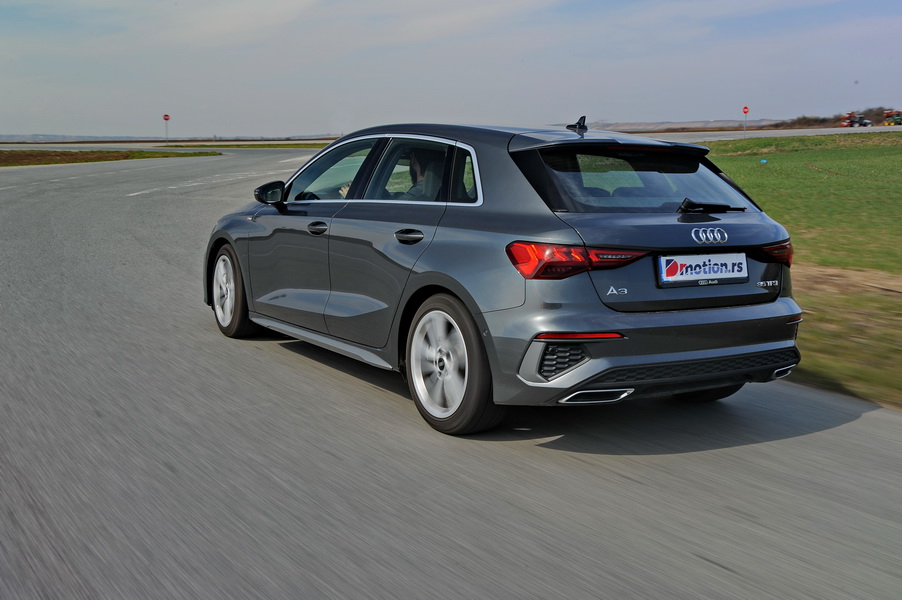 Benzinac je sa svojih 150 KS sasvim pristojno brz, do 100 km/h ubrzava za 8.4 sekundi, a obzirom na 224 km/h maksimalne brzine možemo da pozavidimo Nemcima koji još uvek imaju deonice autoputeva bez ograničenja brzine. Sa druge strane, benzinac nije žedan i A3 35 TFSI može se bez problema voziti sa prosečno potrošnjom od 6.5 litara, a vrhunski kompliment koji kultura rada agregata može dobiti je činjenica da i kada je u radu možete pomisliti da je motor ugašen. Od stajanja u mestu pa sve do velikih brzina Audi A3 ostaje tih.