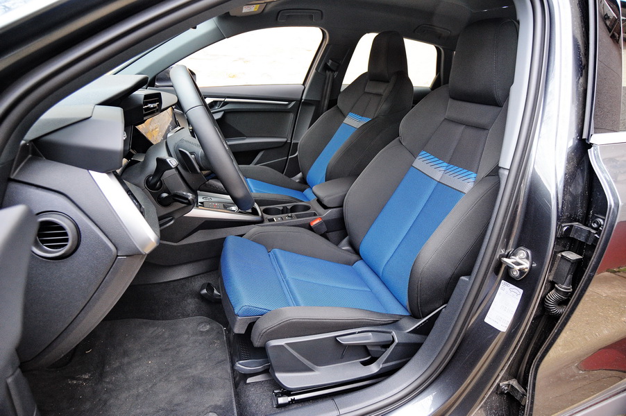 Audi A3 nije velik automobil, ali je ponuda prostora u kabini iznenađujuće dobra. Na prednjim sedištima nekako se i podrazumeva komocija. A pored prostora i hodova podešavanja prednja sportska sedišta su fascinantno dobro oblikovana, iako, za ovu priliku, ne pričamo o najskupljim alkantarom presvučenim sedištima, nego “običnim, štofanim”. Njihova dužina, širina, dubina i uglovi su vrhunski, a pri tom nisu glomazna i nisu “pojela” raspoloživ prostor u kabini.