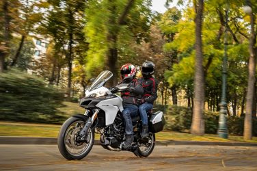 Po pitanju oslanjanja konstatujemo up side down prednje viljuške koje su potpuno podesive i podesivi mono shock pozadi. Atraktivno dizajnirani točkovi sa žbicama i tubeless pneumaticima su od 19“ napred i 17“ pozadi. Dupli prednji kočioni diskovi su sa dvoklipnim čeljustima, zadnji disk sa jednoklipnim, a kočioni sistem ima ABS koji se može isključiti.