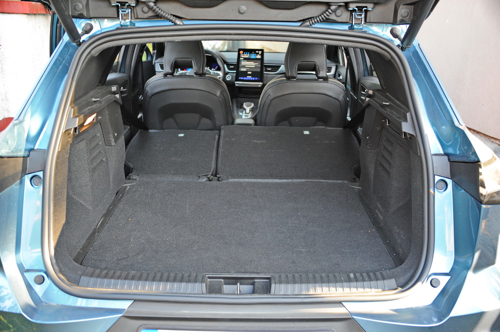 Svojim prtljažnikom Renault Symbioz može da se pohvali. Zapremine je skoro 500 litara sa dve visine poda, lako pristupačan, sa jednostavnim preklapanjem naslona i utovarnom zapreminom koja može da poraste do preko 1.500 litara, što je za jedan porodični crossover više nego dovoljno. Šta više, ako se zadnja klupa pomeri unapred, utovarna zapremina raste na 624 litre.