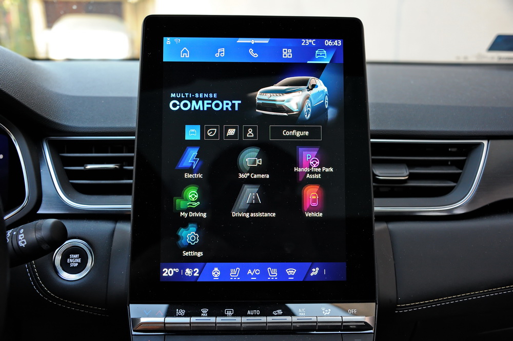 Renault Symbioz je digitalizovan potpuno u skladu sa aktuelnim trendovima u autoindustriji. Instrument tabla je dijagonale pristojnih 10.3“, sa izborom tri grafike prikaza u visokoj rezoluciji, uključujući i sportski crvenu opciju. Višenamenski ekran je takođe velik, dijagonale 10.4“, a po praksi koju koristi Renault, smešten portretno, odnosno uspravno.