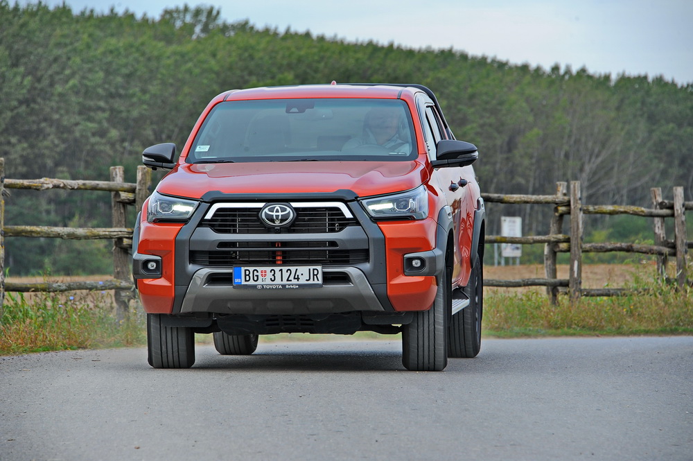 Iako se može postaviti racionalno pitanje čemu vrhunski JBL audio sistem sa čak devet zvučnika, i pomisliti da je suvišan, nije tako. Motor se čuje i to ne prejako, samo dok traje ubrzavanje, ali je pri konstantnim brzinama ovo vrlo dobro akustički izolovano vozilo, u kojem se na putu može uživati u muzici. Zanimljivo je i da Toyota uz sve verzije Hiluxa nudi svoj bogati TSS paket bezbednosnih asistencija. Među korisne svakako spadaju stabilizacija prikolice, adaptivni tempomat i asistencija održavanja kolovozne trake. Hilux, kao i većina modela u segmentu može se kupiti sa pogonom samo na zadnjim točkovima ili na svim točkovima. U drugom slučaju, radi se o uključivom 4×4 sistemu, što se za 4H pogon može uraditi u vožnji. Pogon raspolaže redukcijom, a standardna oprema je i asistencija za polazak na uzbrdici, ali i DAC, sistem za održavanje brzine na nizbrdici.