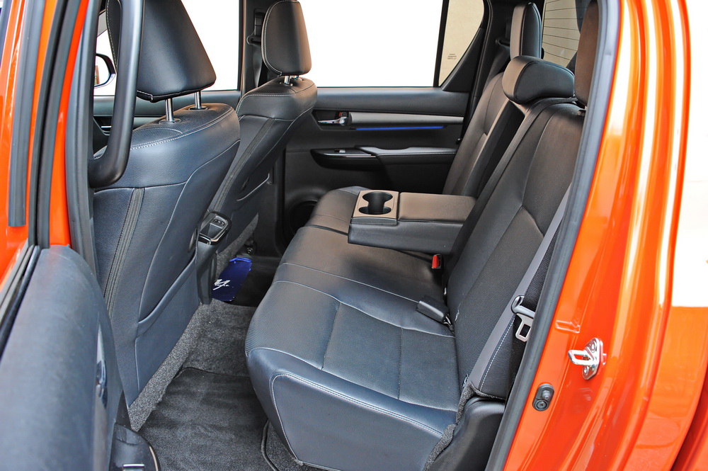 „Nepobedivi“ (Invincible) Hilux u kabini (Double cab) je i u teoriji i praksi ono što petosed sa četvora vrata i treba da ima. Ponuda prostora je odlična, uzdužno pomeranje vozačevog (i suvozačevog) sedišta koje je impresivno i električno. Iako su presvučena kožom i dobro dimenzionisana, prednja sedišta ipak nisu stigla do nekih stilskih visina i podsećaju da su korenovi svakog pick-upa u radnoj mašini.