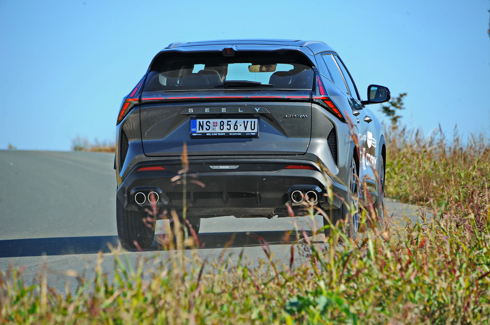 Trim ogibljenja donosi dobro upijanje neravnina i vrlo malo naginjanja u krvinama, što je verovatno posledica prilično male mase ovogog modela, koja je 1.470 kilograma, što je za jedan SUV sasvim razumno. Uz pomenutu masu vozila, i 174 KS je adekvatna motorizacija, koja ovaj SUV do 100 km/h ubrzava za manje od osam sekundi, ali što je podjednako važno ne prazni rezervoar. Geely Cityray se bez problema može voziti sa manje od 7 l/100 km uprosečene potrošnje, mada je svakodnevna realnost oko 7.5 l/100 km, što je i dalje sasvim razumno.