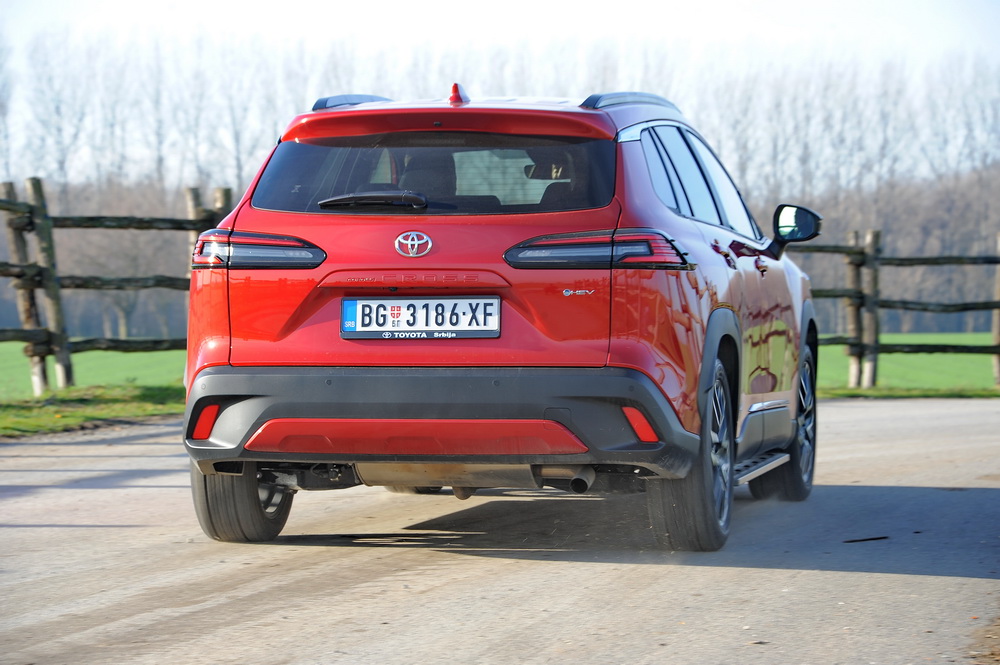 Po pitanju trima ogibljenja, ovaj model je u osnovi nešto mekše trimovan, što znači da je put ne baš savršenim saobraćajnicama bio vrlo udoban. Generalno, Toyota Corolla Cross 2.0 ima vrlo dobro ukomponovanu voznu dinamiku, ako ocenjujemo pogon, upravljanje i kočenje. U krivinama, kako na usponu tako i na nizbrdici, naginjanja karoserije nema, osećaj kontakta sa podlogom je uvek adekvatan, a pomenuta pozicija sedenja donosi i odličnu preglednost.