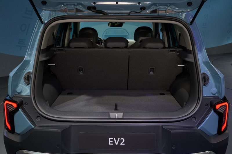 Novi sistem kliznih i nagibnih zadnjih sedišta maksimizira svakodnevnu upotrebljivost. Prostor za noge pozadi se proteže sa 885 milimetara na 958 milimetara, što je najviše u segmentu. Kada su sedišta potpuno pomerena napred, EV2 nudi impresivnu zapreminu prtljažnika do 403 litra. Prostor ispod “haube” je upotpunjen prtljažnikom od 15 litara, što je najviše u njegovoj klasi.