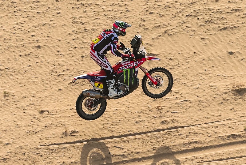 U konkurenciji motociklista fabrički vozač Honde Ricky Brabec ponovo je u vođstvu, 3′:20″ ispred Luciana Benavides fabričkog vozača KTM-a, tako da je borba za pobedu na Dakaru potpuno otvorena. Tosha Schareina je na Hondi, manje više obezbedio treće mesto sa 27 minuta zaostatka iza vodeće dvojice, ali i preko pola sata prednosti u odnosu na četvrtoplasiranog Skylera Howesa na Hondi.