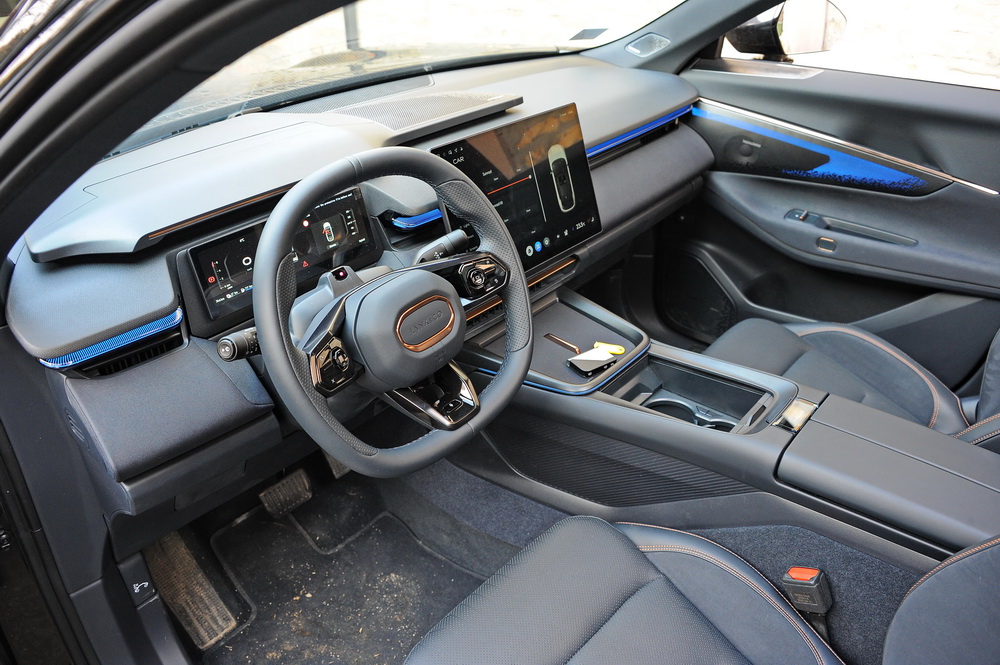 U kabini Lynk&Co 08 se jako štedelo na prekidačima. Osim onoga što je na upravljaču, i prekidača koji zamenjuju ručke na vratima, nije ostalo ništa. Pardon, ostao je prekidač sva četiri pokazivača pravca koji ćete morati da tražite po kabini. Dakle, Lynk&Co 08 se za informacije, komunikacije i sve funkcije oslanja na 10,2” ekran za vozača i povelik 15,4” višenamenski ekran. Ko voli stil koji su usvojili Volvo i Tesla, uživaće, ko ne voli… Stvar ukusa i navike, a praktičnost je, objektivno, vrlo diskutabilna. Pre svega, infotejment ne može da se pohvali brzinom, pa se, recimo, za aktiviranje grejača sedišta, mora proveriti da li je sistem shvatio vašu želju. Za slučaj da je muzika preglasna, (a dešava se da po “buđenju” vozila jačina zvuka ne bude tamo gde ste je ostavili) ili je utišavate dugmetom na upravljaču, ili prvo na ekranu nađete, pa aktivivirate “volume” komandu, pa tek onda utišate muziku koju za to vreme sluša cela ulica.