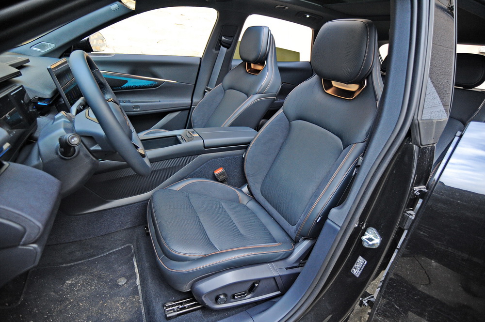 Očekivano, prednja sedišta su elektropomična, vrlo dobro dimenzionisana, udobna i opremljena grejačima, a nismo prevideli ni lepo stilizovane, integralne naslone za glavu, u maniru koji je Volvo patentirao još pre više od 20 godina. Specifičnost sedišta su dugi hodovi, pa vozač može birati da li želi da sedi niže, kao u automobilu ili više i uspravnije kao u tipičnom SUV-u,
