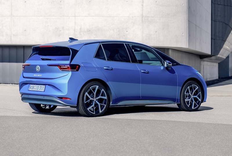 Dizajneri su pametno retroaktivno ugradili novu rešetku „hladnjaka“, povezujući farove LED svetlosnom trakom koja sadrži osvetljeni Folksvagen logo. Točkovi se kreću od 18 do 20 inča, sa novim, uvećanim obodom koji podseća na japansku zvezdu za bacanje i nazvan je po Zwickau, rodnom gradu fabrike ID-a. ID.3 Neo takođe odbacuje crnu boju, jer su tamni stubovi vetrobranskog stakla, krov i zadnja ploča između zadnjih svetala kod prethodnika eliminisani kako bi se postigao čistiji, sofisticiraniji izgled. Čini da ID.3 izgleda manje crtano, ali njegova nepromenjena, praktično jednodelna silueta neće se pomešati sa Golfom – i zato ime ID.Golf ostaje rezervisano. „Promena imena o kojoj smo najviše raspravljali bili su ID.3“, rekao je izvršni direktor VW brenda Thomas Schäfer. „Mnogo ljudi nam kaže: ‘zovite ga Golf’. Ali to nije Golf, tako da ga nećemo zvati ID.Golf. Proporcije ID.3 su drugačije. Mana je, prema mišljenju kupaca i medija, bio njegov izgled, posebno unutrašnjost i materijali, i to je sada ispravljeno.“