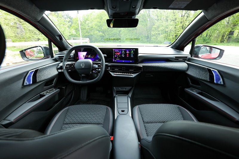 Kabina je inspirisana potpuno električnim Renaultom 5, sa dva ekrana, dok su zadržana i fizička dugmad. Međutim, stare rotirajuće komande Clia su nestali u ime minimalizma . Ipak, poseban red kontrola klime nalazi se ispod centralnih otvora za ventilaciju, tako da nije sve premešteno na ekran.
