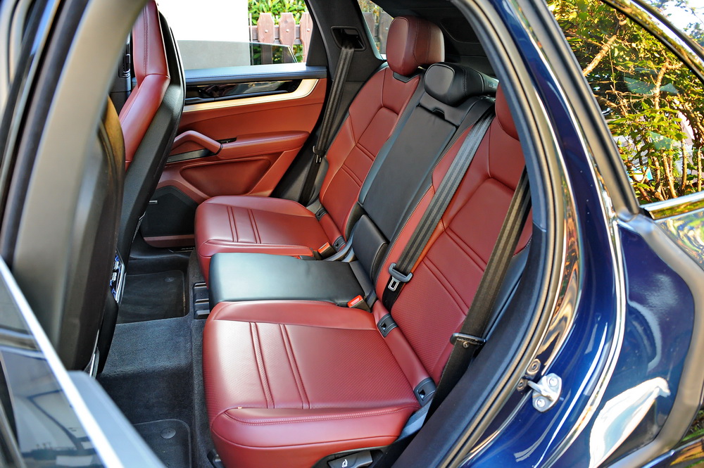 Zadnja klupa je čak iznenađujuće malo i plitko profilisana, pa svakako, u oštroj vožnji kroz krivine, ne treba očekivati da će putnike pozadi zadržati na svom mestu. Sa druge strane, zadnja klupa definitivno i vrlo uspešno radi svoj posao udobnog smeštaja putnika zahvaljujući odličnoj ponudi prostora i ispunjava porodičnu ulogu modela Cayenne.